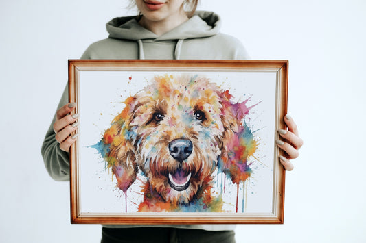 Watercolor Labradoodle Goldendoodle Poster Print. Colorful Wall Art Painting Gift for Dog Lovers, Doodle Mom Dad. Watercolour splatter paint