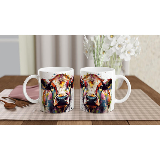 Highland Cow Drinking Coffee Canvas / Poster Print. Watercolour Paint Splash Wall Decor Gift Scottish Shaggy Cow Painting Farm Animal Farmer - CanvasityCrafts - Free Shipping