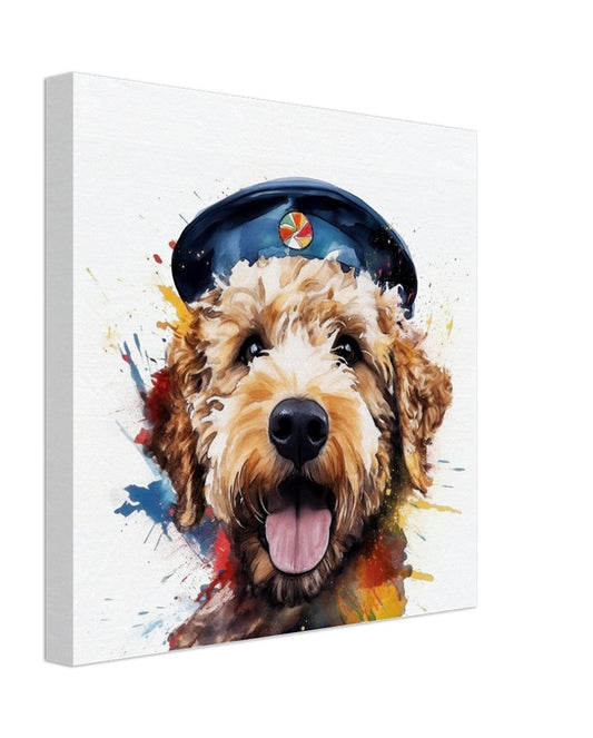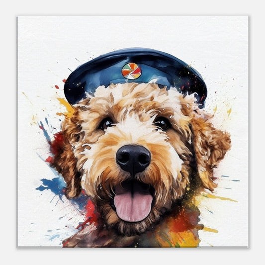 Colorful Sailor Goldendoodle Labradoodle Square Canvas Wall Art Print! Dog Lovers, Navy Sailors Boaters Bathroom Decor, Doodle Mom Dad Gift