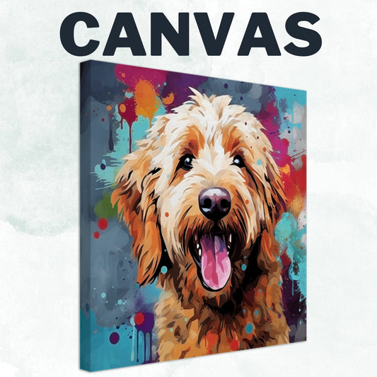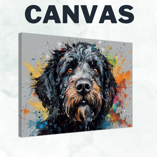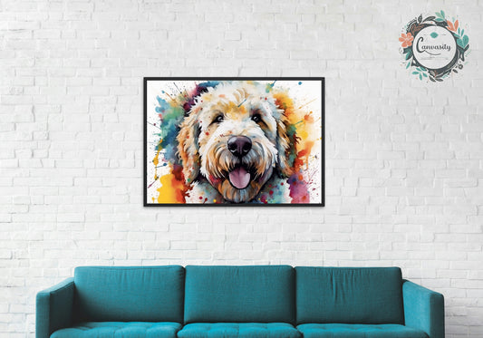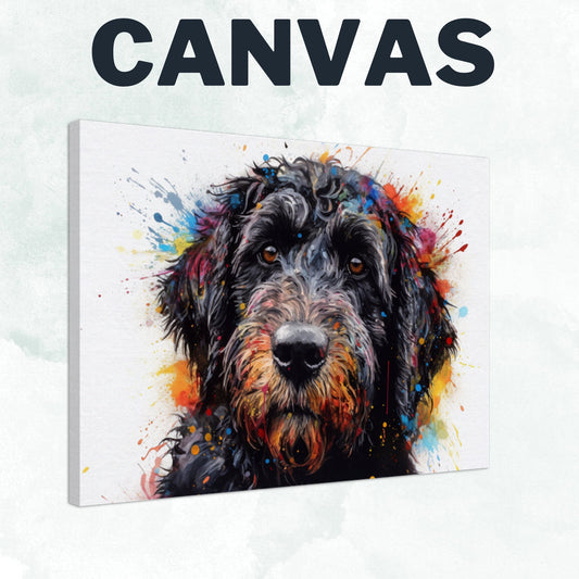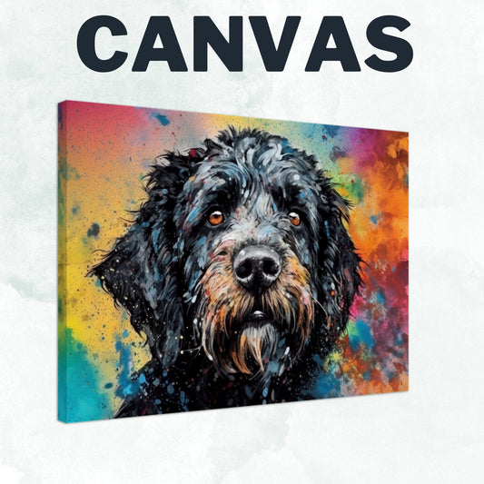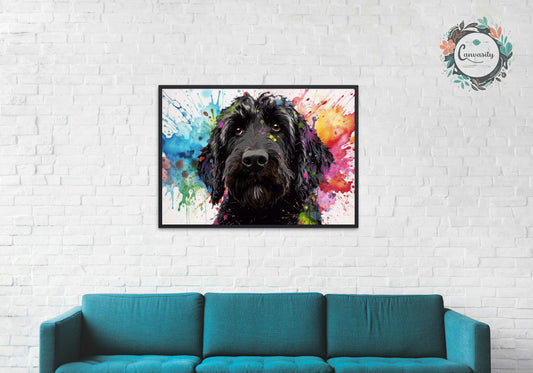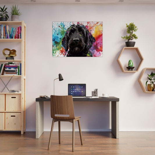 Black Labradoodle / Goldendoodle Canvas or Poster Print. Colorful Wall Art Picture for Doodle Mom, Dad, Home Office Rainbow Dog Lover Gift