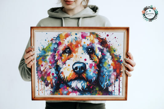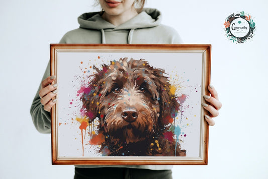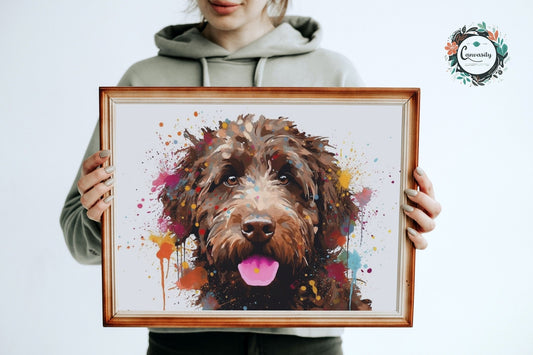 Chocolate Cockapoo Poster Print. Watercolour Dog Art & Prints Gift, Painting for Doodle Dog Mom, Dad. Abstract Art, Cavapoo Labradoodle