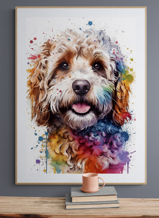 Watercolor Cockapoo Poster Print. Dog Art & Prints Gift for Dog Lover, Painting for Doodle Mom, Dad. Abstract Wall Art, Cavapoo Labradoodle