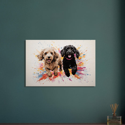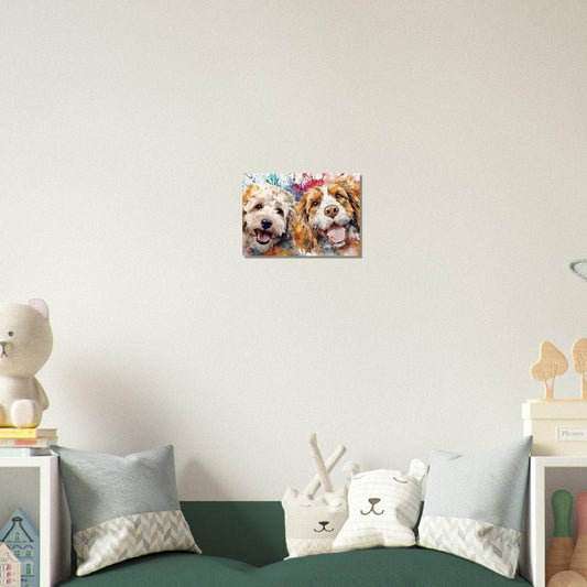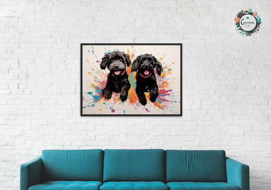Two Happy Cockapoos! Watercolor Pop Art Poster Print, Colorful Wall Art Gift for Dog Lovers, Doodle Mom or Dad. Cream and Red Brown
