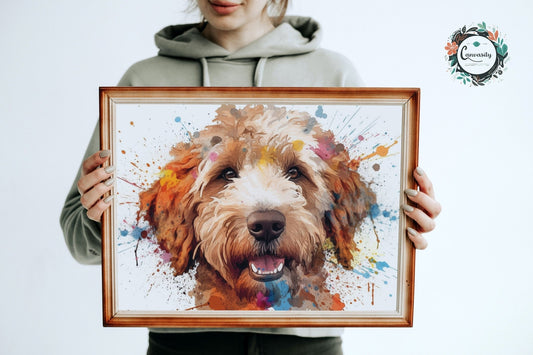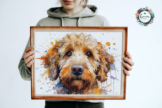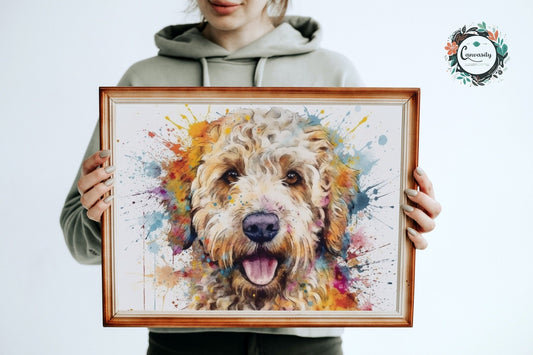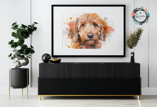 White Labradoodle / Cream Goldendoodle Poster Print. Watercolor Painting Gift for Dog Lovers, Picture for Doodle Mom, Dad. Abstract Wall Art