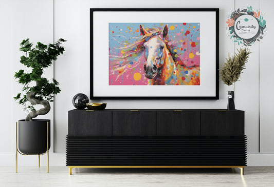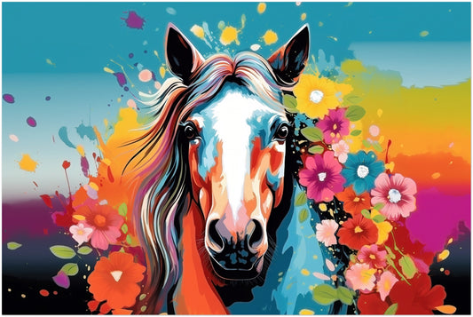 Colorful Horse Poster. Colorful Animal Wall Art Floral Inspired Print. Gift for horse rider, farmer, mom. Farm Nursery Print, Bedroom Art