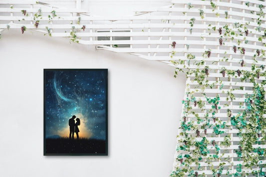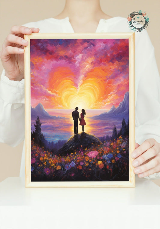 Watercolor Couple in Love Canvas or Unframed Print. Watercolour Tree Silhouette Painting, Valentine's Day Gift Anniversary Present