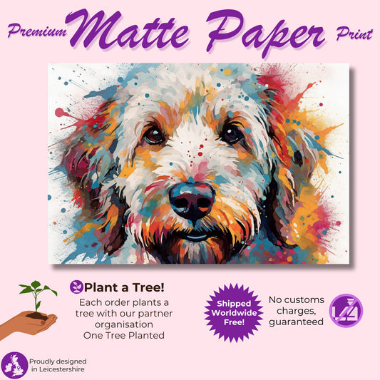 Labradoodle Goldendoodle Posterdruck - Farbenfrohes Aquarell, süßes Hundekunst-Geschenk für Hundeliebhaber. Geschenk für Doodle-Mama oder -Papa