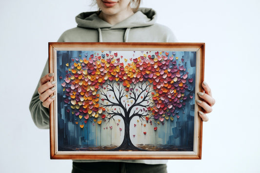 Buntes Regenbogen-Baum-des-Lebens-Poster. Ungerahmter Wandkunstdruck – Naturlandschaft, Wald, Blumen, Boho-Wanddekoration. Matt/Halbglänzend