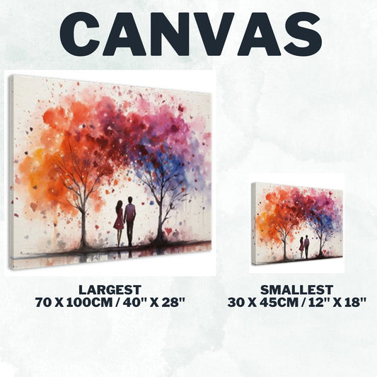 Watercolor Couple in Love Canvas or Unframed Print. Watercolour Tree Silhouette Painting, Valentine's Day Gift Anniversary Present
