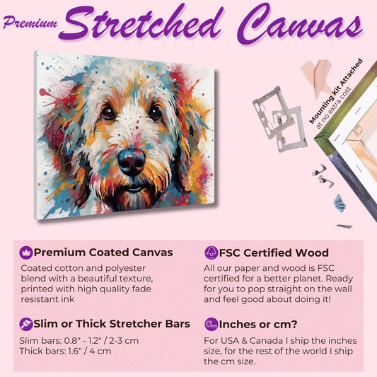 Colorful Labradoodle / Goldendoodle Canvas Animal Wall Art Print Picture. Dog Lovers, Home Office, Living Room Decor, Doodle Mom or Dad Gift