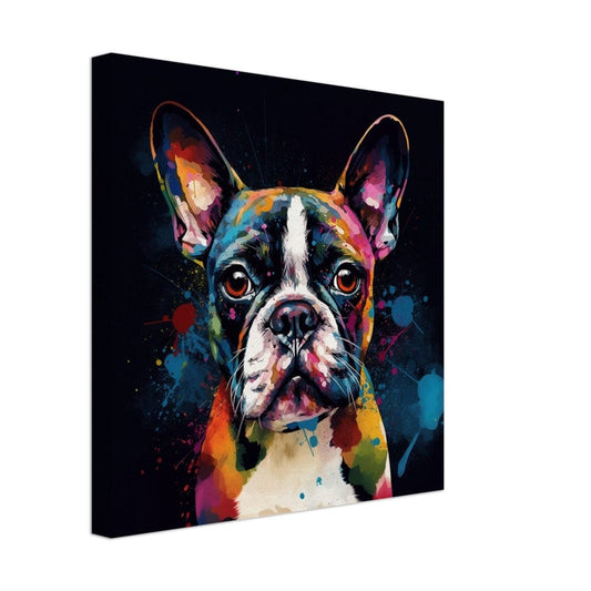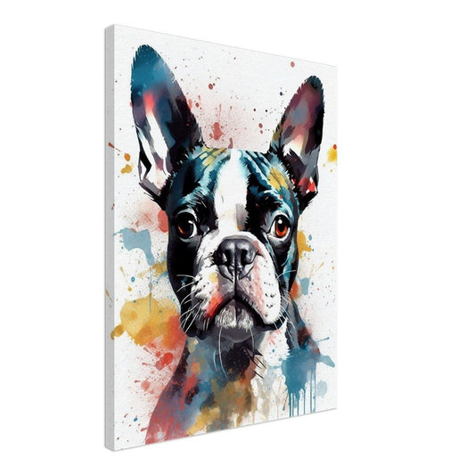 Black, White French Bulldog Puppy Canvas. Colorful Wall Art Print Picture for Dog Lovers, Watercolor Frenchie Mom Gift, 2 Puppies Painting