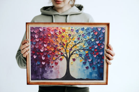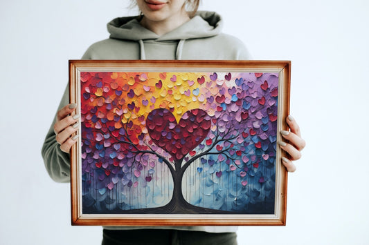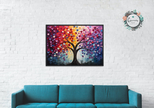 Affiche colorée d'arbre de vie d'arc-en-ciel. Impression d’art mural sans cadre – Décoration murale bohème florale de paysage naturel. Mat/semi-brillant