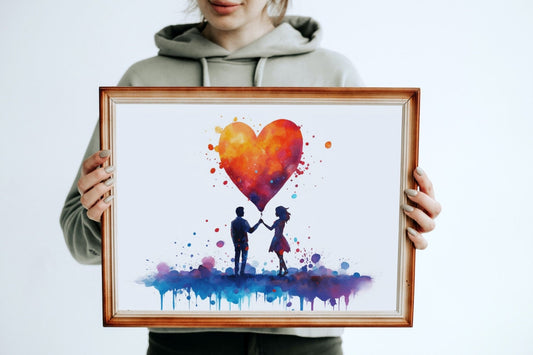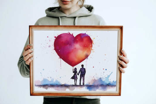 Aquarelle Couple amoureux Toile ou impression non encadrée. Peinture de silhouette d'arbre à l'aquarelle, cadeau d'anniversaire pour la Saint-Valentin