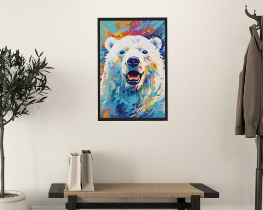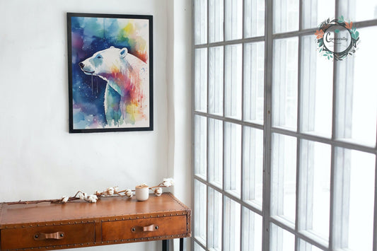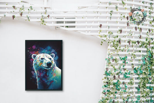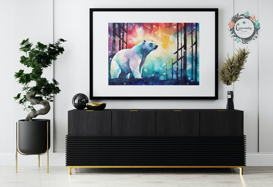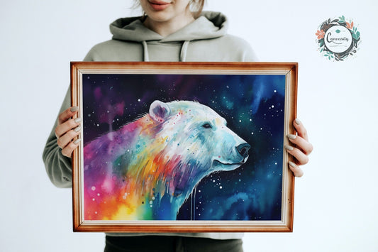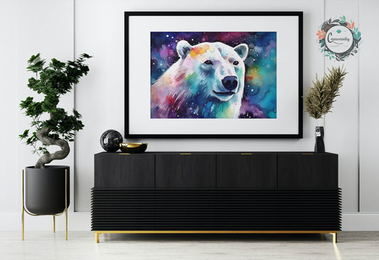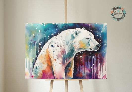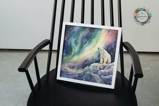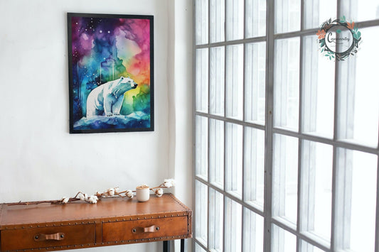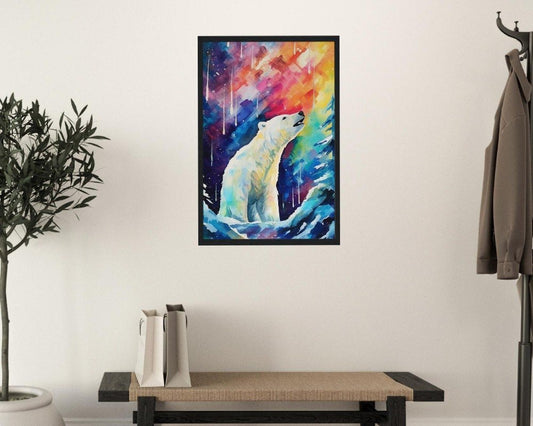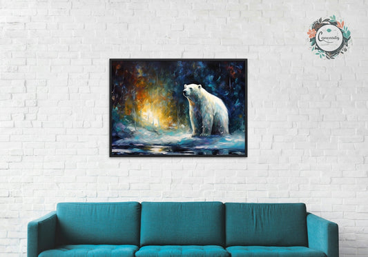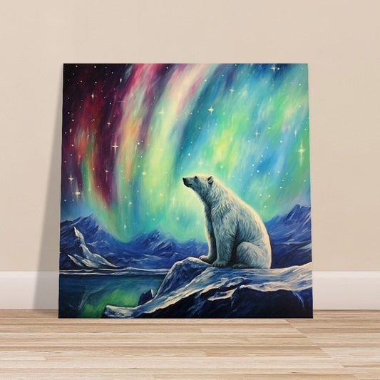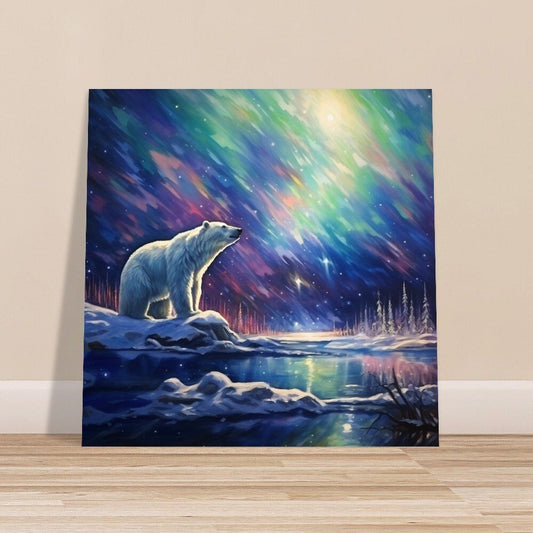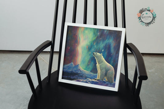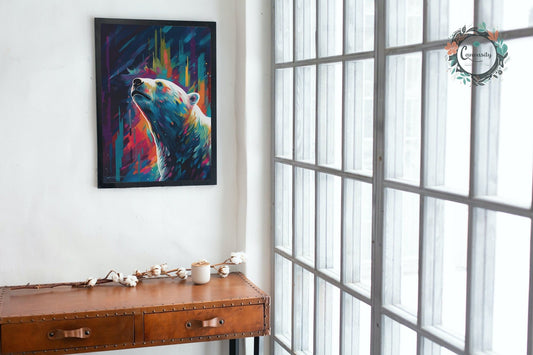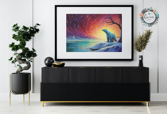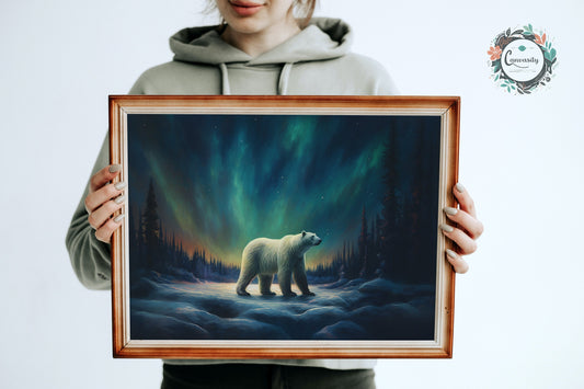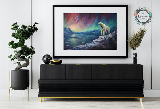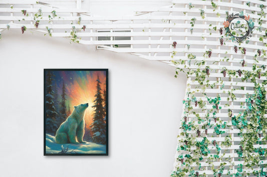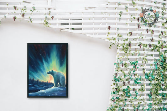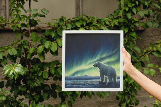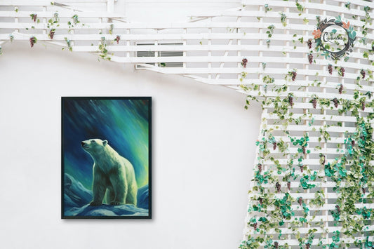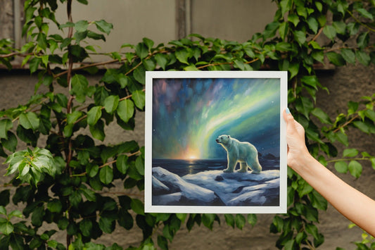 Polar Bear with Northern Lights Oil Painting Unframed Print - Wildlife Animal Wall Art for Nature Enthusiasts, Aurora Borealis Gift