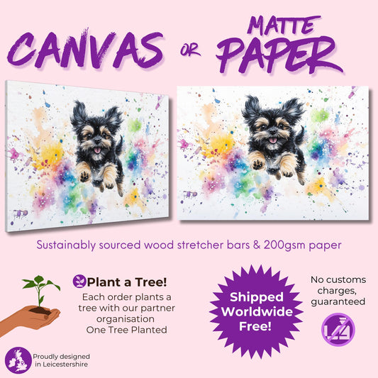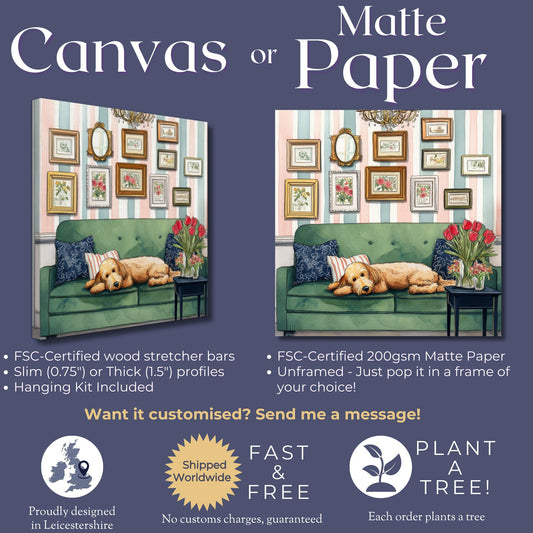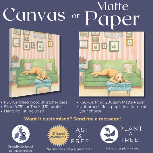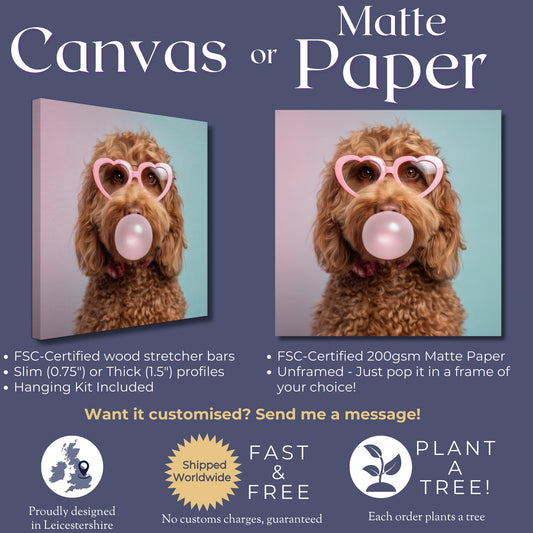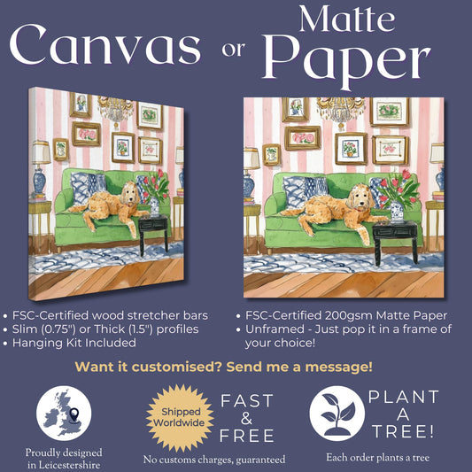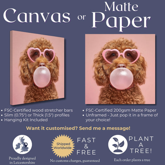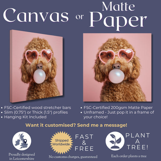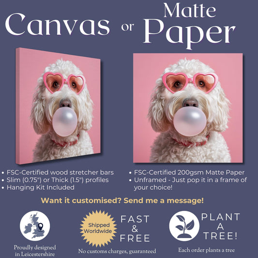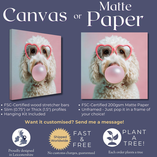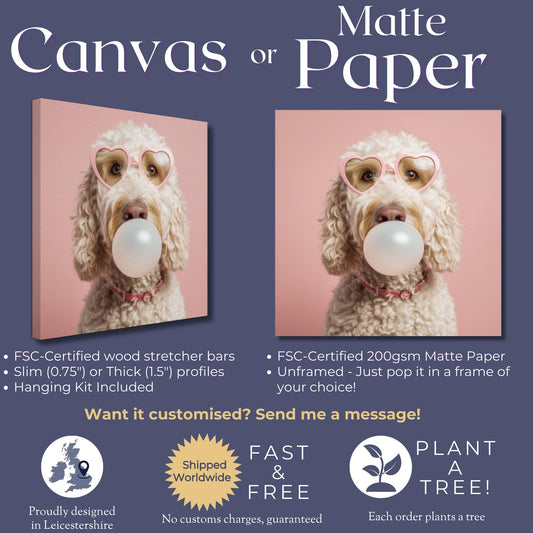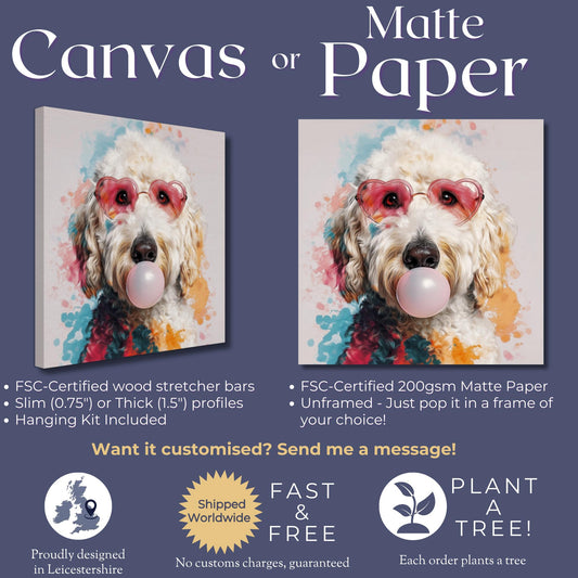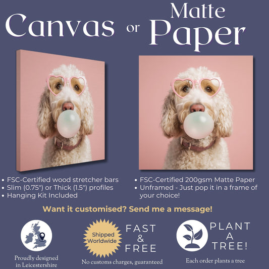 Pink Flowers Dalmatian Premium Print (Unframed) - Colorful Watercolor Pop Art Print