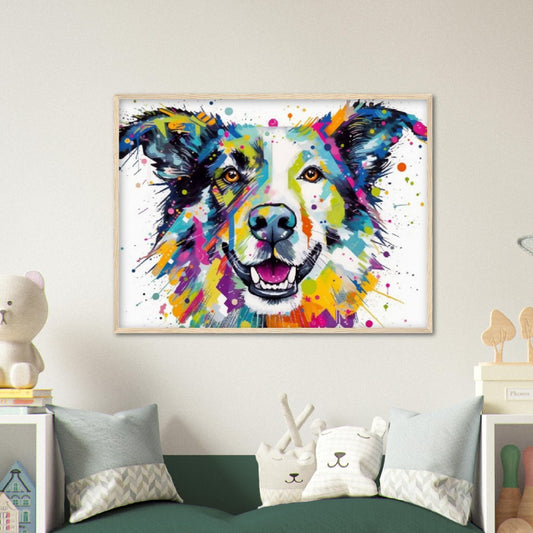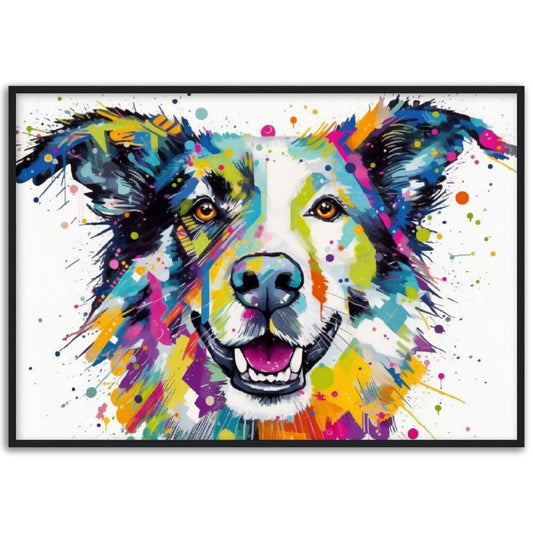 Happy Border Collie Watercolor Poster Print - Pop Art Wall Art Gift for Dog Lover, Farmer, Cute Fun Sheep Dog Painting, Quality Matte Paper