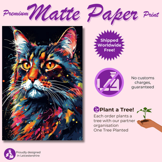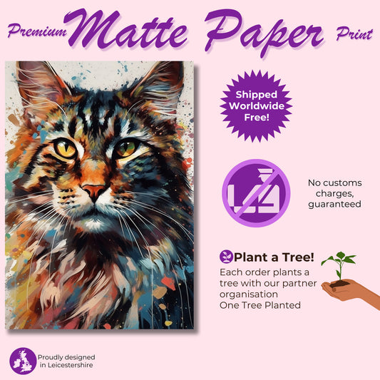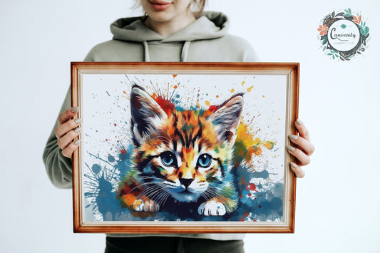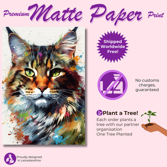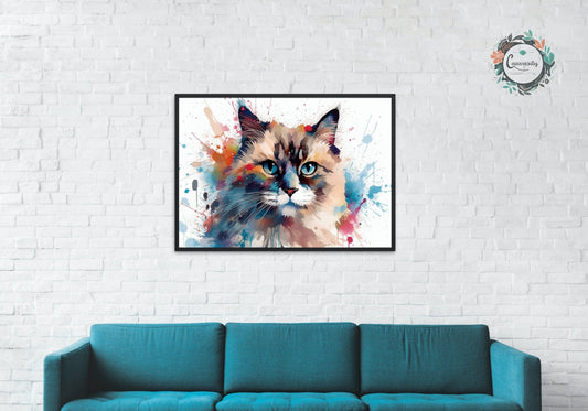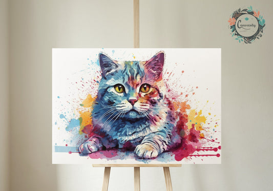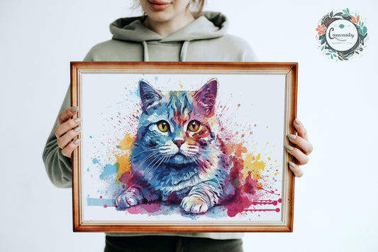 Colorful Bengal Cat Watercolor Poster Print | Colourful Wall Art Gift for Cat Lovers, Mom or Dad. Meow!