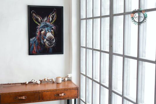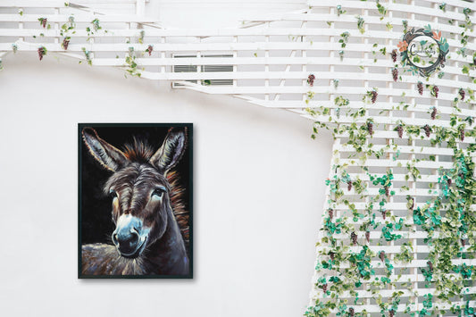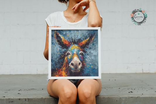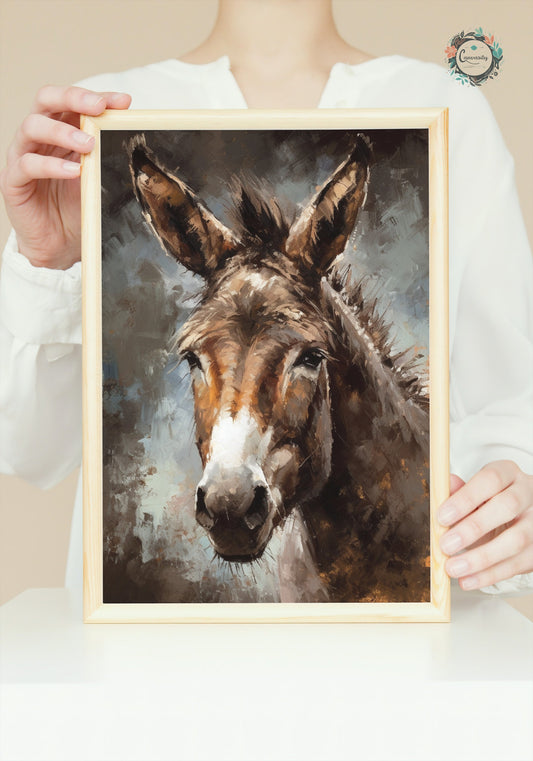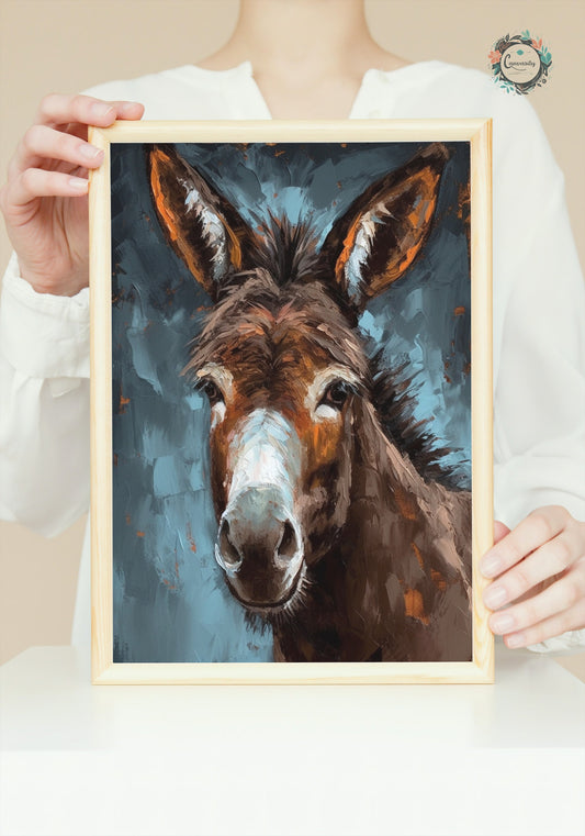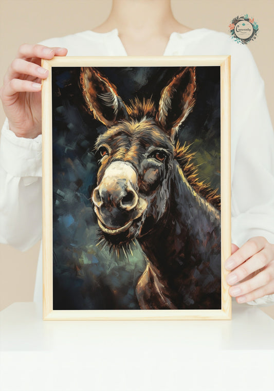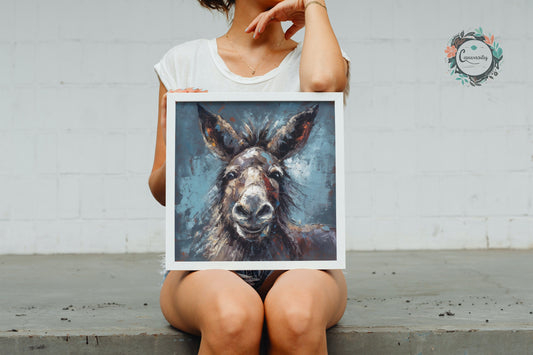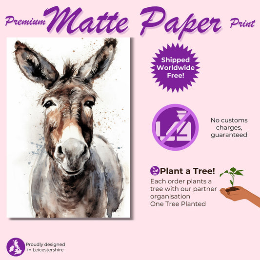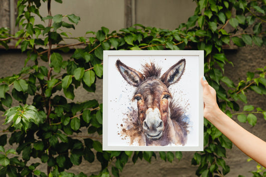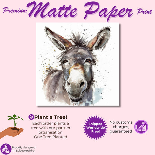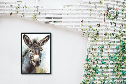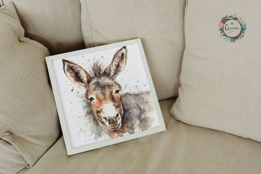Happy Donkey Fine Art Print. Unframed Watercolor Poster, Wildlife Animal Wall Decor Gifts, Farm Animal, Farmer Gift. Watercolour Mule, Grey