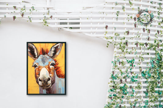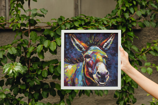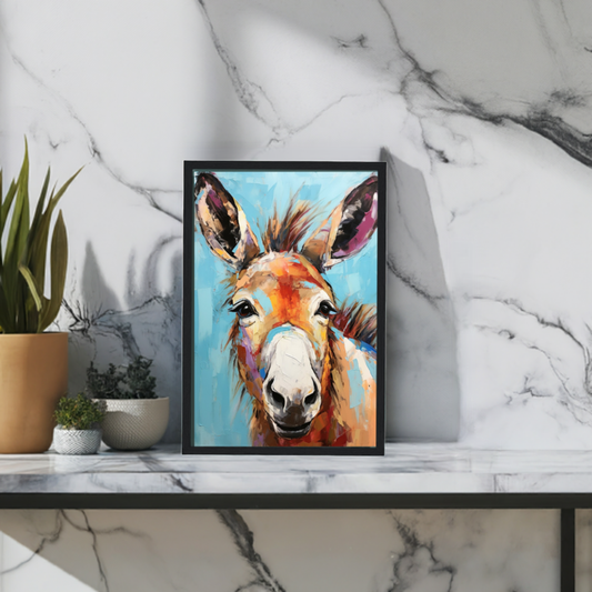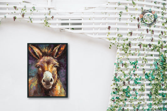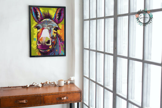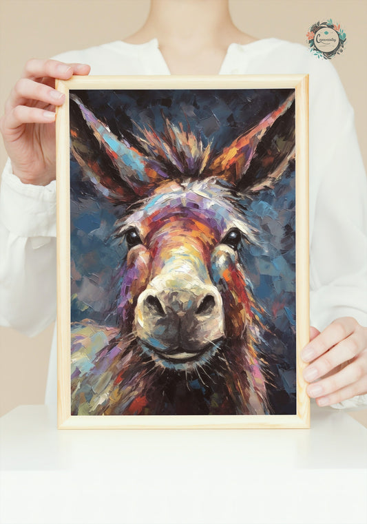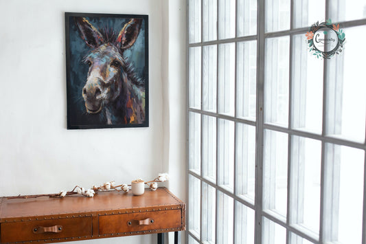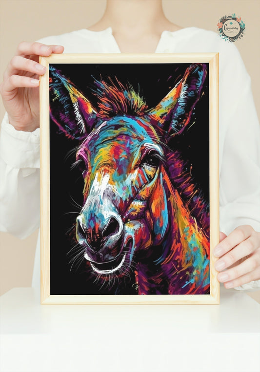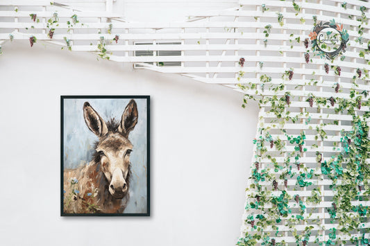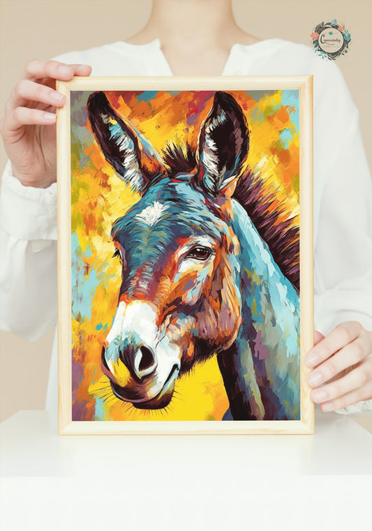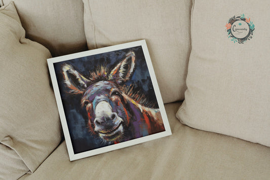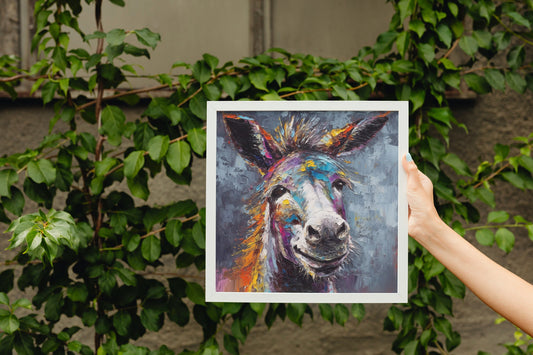 Happy Donkey Fine Art Print. Unframed Watercolor Poster, Wildlife Animal Wall Decor Gifts, Farm Animal, Farmer Gift. Watercolour Mule, Grey