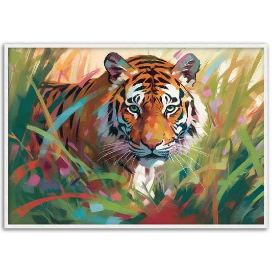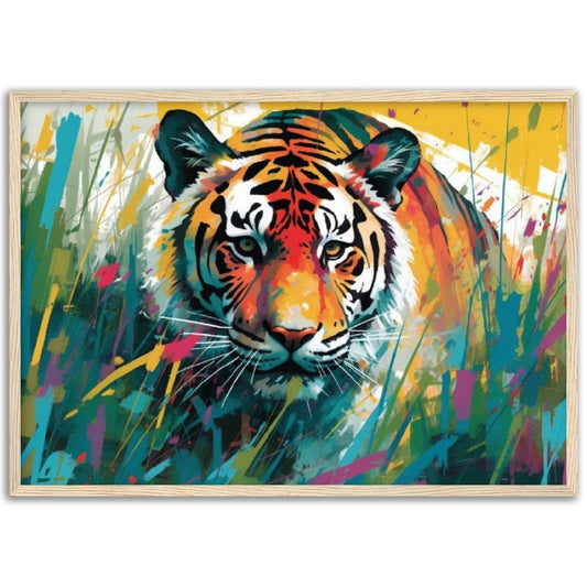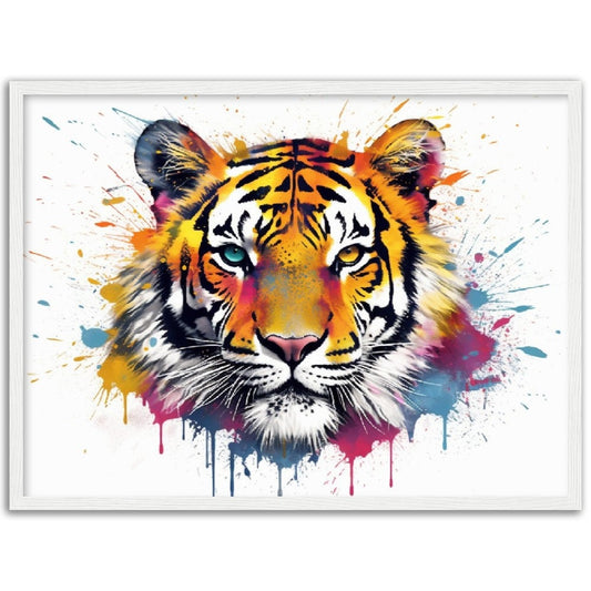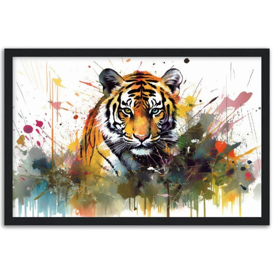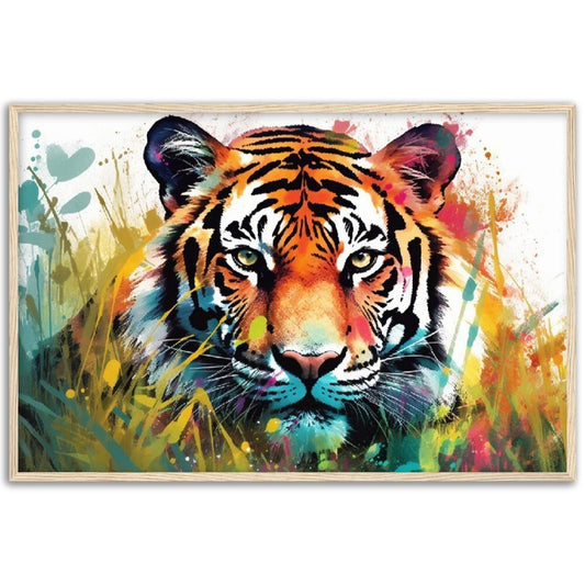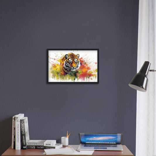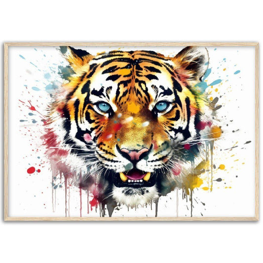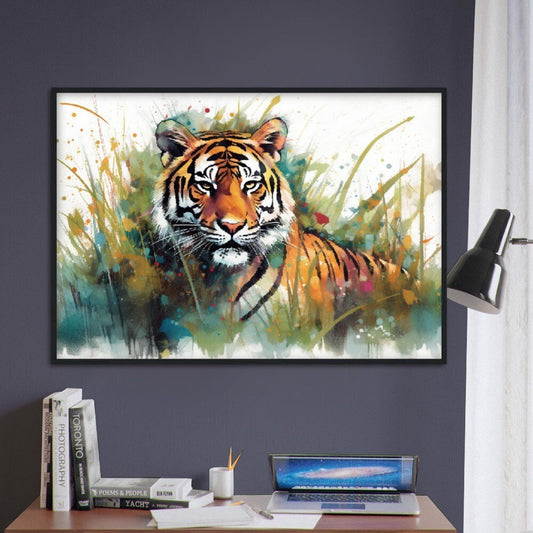 Exotic Heterochromia Tiger Stripe Wall Art | Watercolor Framed Poster | Wildlife Safari Gift for Tiger Lover