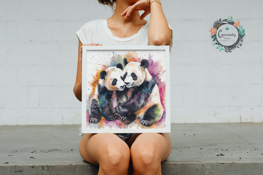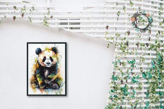 Watercolor Baby Panda Poster Print - Cute Nursery Kids Room Rainbow Art Painting Gift for Giant Panda lover. Present for Teen, Mom, Dad
