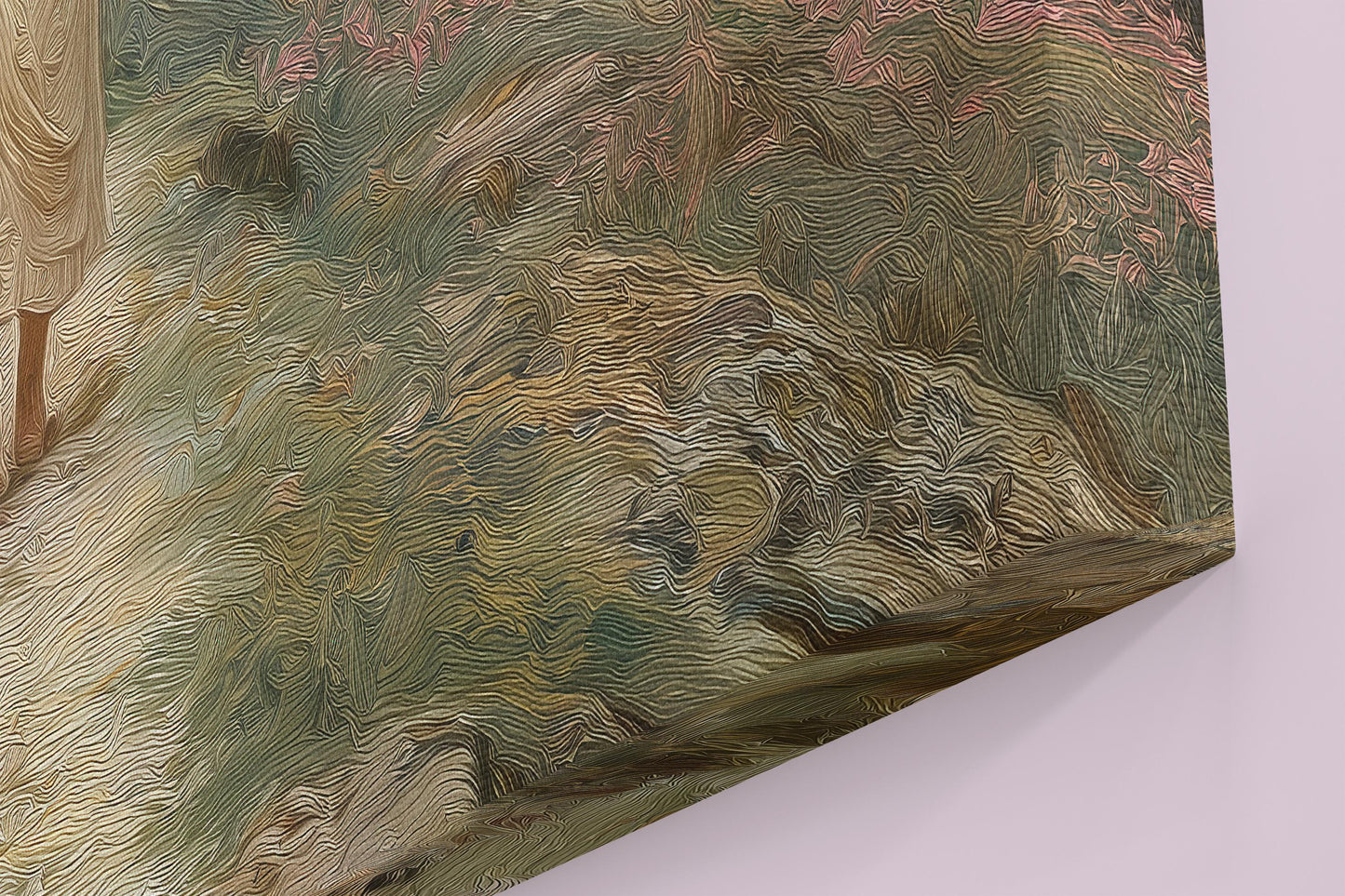The impressionist style of this Jesus artwork creates a fresh perspective on the familiar Good Shepherd story. The textured brushstrokes and swirling patterns of cherry blossoms invite viewers to experience the biblical narrative in a new, artistic way - perfect for those who appreciate both spiritual meaning and contemporary art aesthetics.