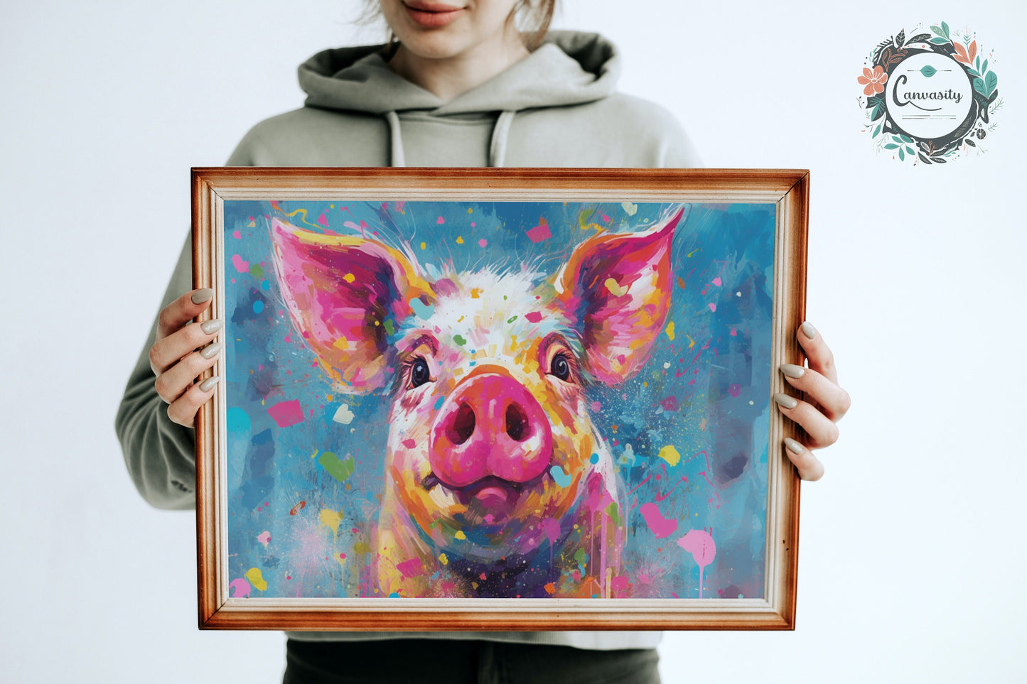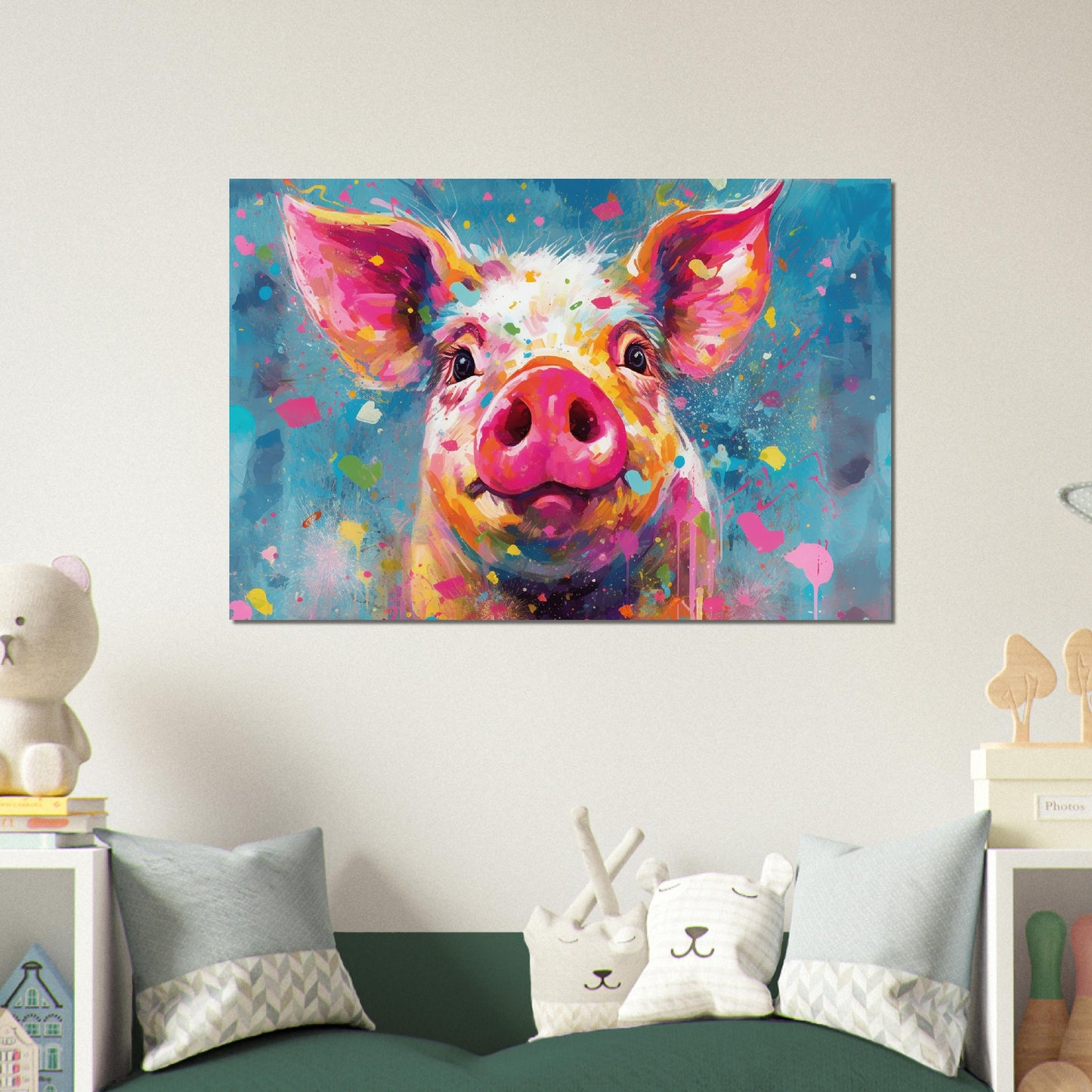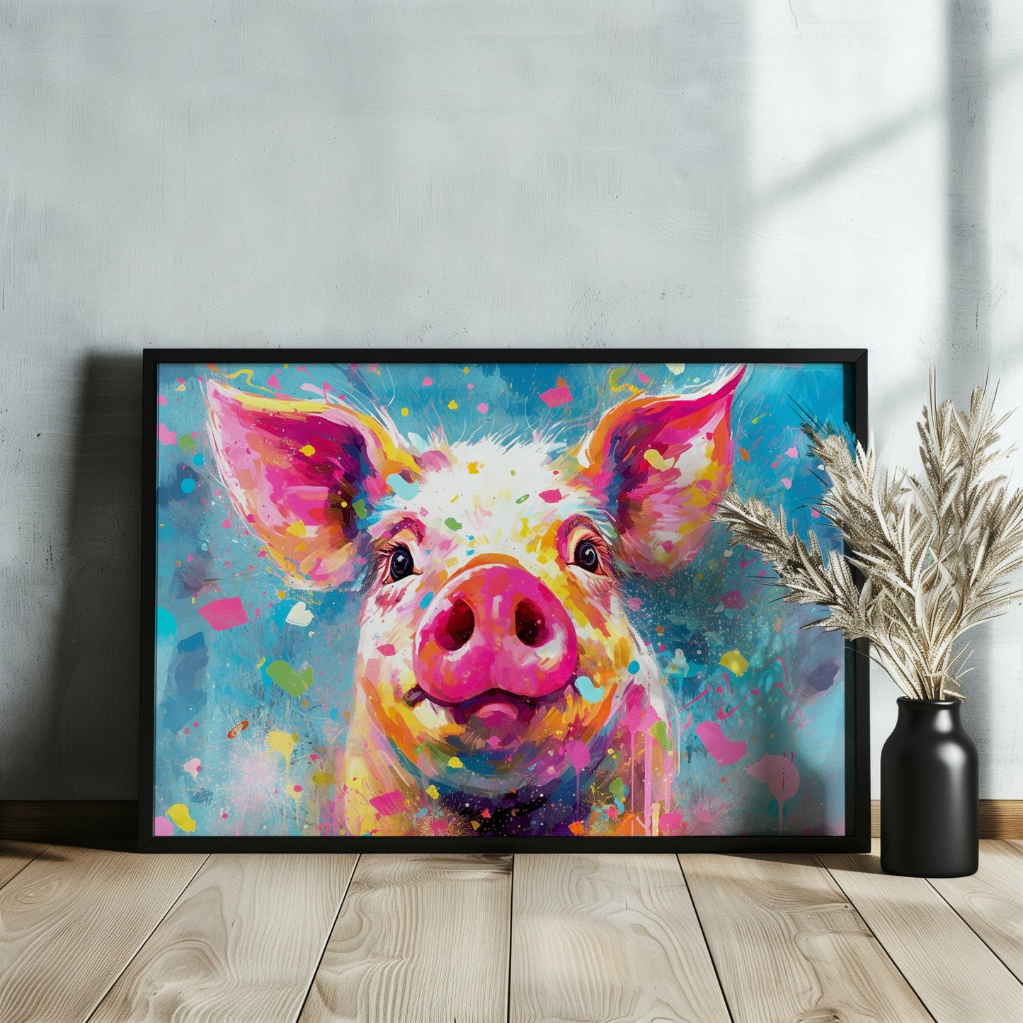 Order yours today and enjoy this beautiful print of a colorful pig in your home, living room, bedroom, nursery, kitchen, bathroom or office (or wherever you like really, don’t let my description hold you back! Put it in your pigsty if you like)