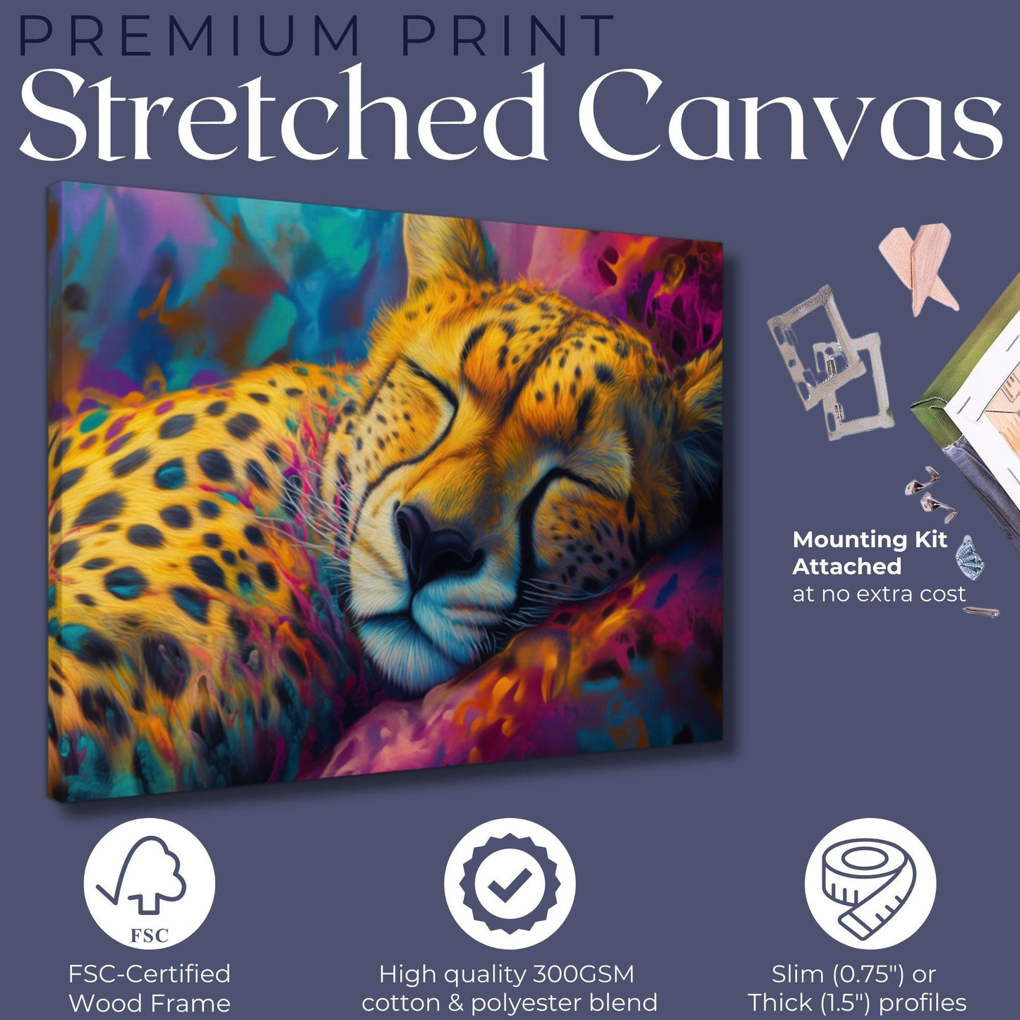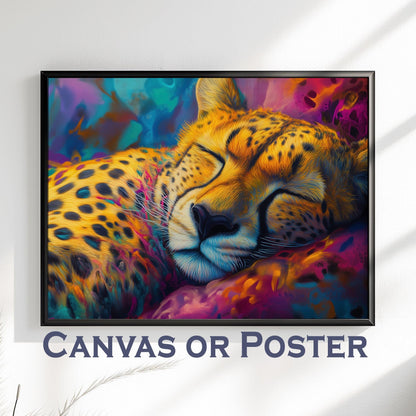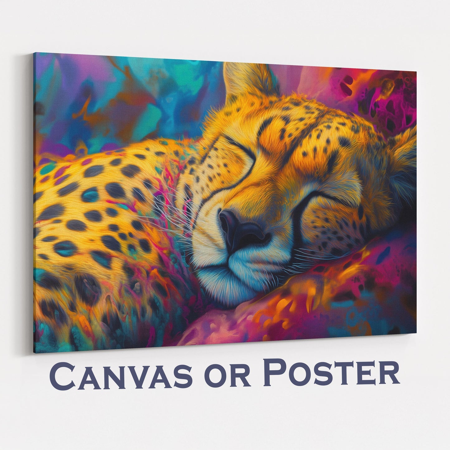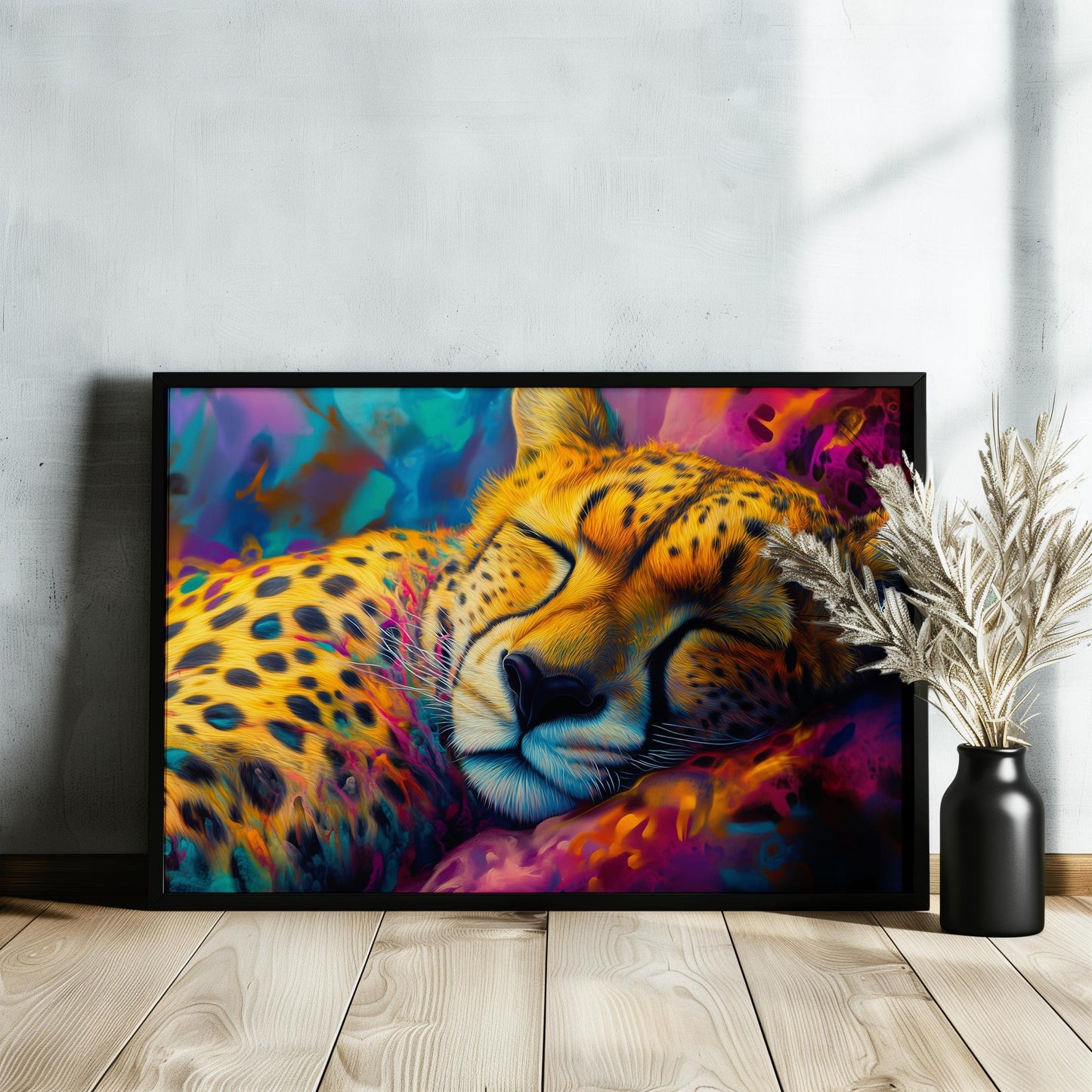 Order yours today and enjoy the serene yet vibrant beauty of this Colorful Sleeping Cheetah wall art!