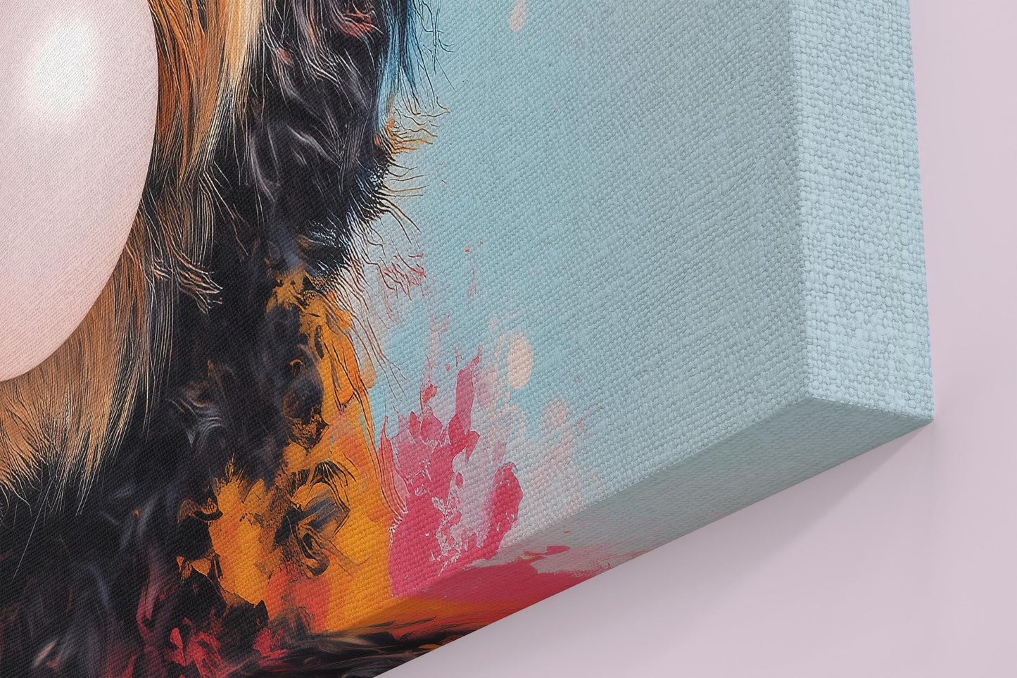 🐾 Canvas is stretched over a slim 0.75" (2 cm) or thick 1.5" (4cm) FSC certified wood stretcher bar. Hanging hardware comes attached as standard