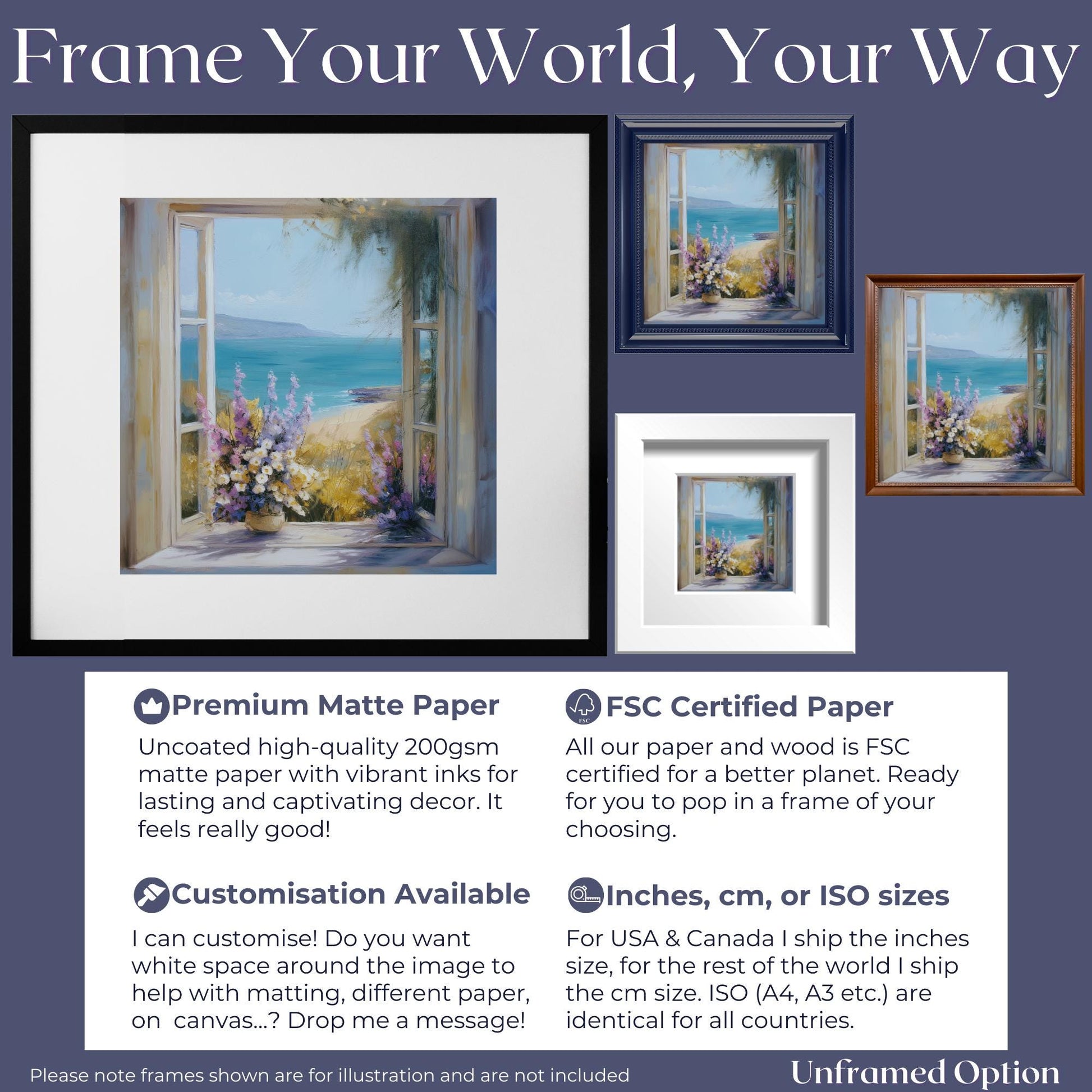 This beautiful window wall art print is available in a variety of sizes to perfectly fit your space:
